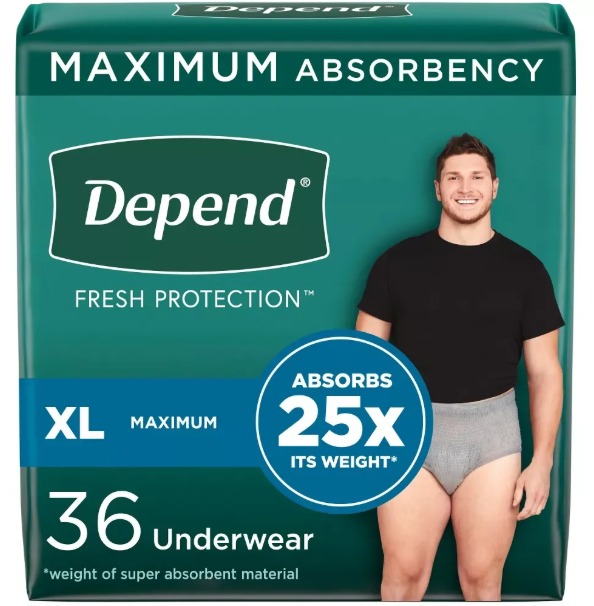 Depend Fresh Protection Incontinence Underwear for Men, extra-large (44?54″ waist), 36 count; Depend?s packaging and product may vary