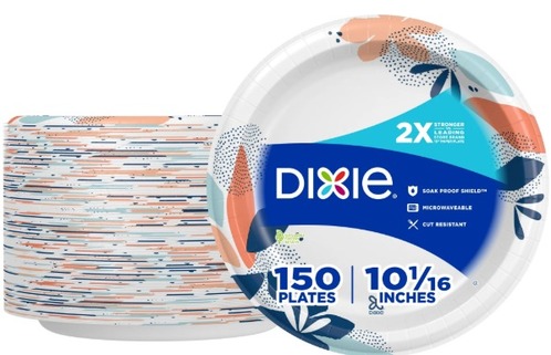Enjoy the same dependable strength for hassle-free mealtimes?now with the added benefit of being commercially and backyard compostable except in California. These plates are 2X stronger than the leading comparable store brand 10? paper plate, so you can serve without worry. Perfect for everything from quick snacks to get-togethers with family and friends, these durable, disposable plates make mealtime easy. Plus, Dixie? products* offer both convenience and stylish designs at an affordable price. Stock up today! If you don?t have a dedicated area in your home or backyard for composting, Dixie? plates and bowls may be commercially composted where facilities are available. Includes 150, 10? disposable paper plates. *All Dixie? products (paper bowls and paper plates) manufactured in Georgia- Pacific facilities are kosher certified by the Orthodox Union.