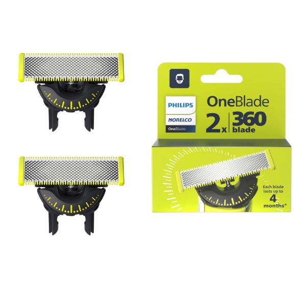 The Philips Norelco OneBlade replacement blade trims, edges, and shaves any length of hair. The unique OneBlade shaving technology integrates a fast moving cutter (200x per second) with a dual protection system to give you an efficient comfortable shave on longer hairs. OneBlade does not shave too close, so your skin stays comfortable. Two replaceable blades last up to 8 months* (*For best shaving experience. Based on 2 full shaves per week. Actual results may vary.) 2 New Replacement Blades
